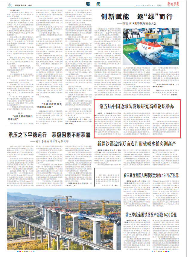 解放军报讯 记者钱晓虎、特约记者宋鹏报道:共商治边控海之策、共建交流协作平台……10月11日至12日,第五届中国边海防发展研究高峰论坛在陆军边海防学院乌鲁木齐校区举办。论坛主题围绕“新时代新征程的现代边海防”展开,国家和军队相关部门,军地涉边涉海高校、研究机构和沿边沿海省(市)边海防委员会办公室、边海防部队等60多家单位、近百名代表与会参加讨论交流。