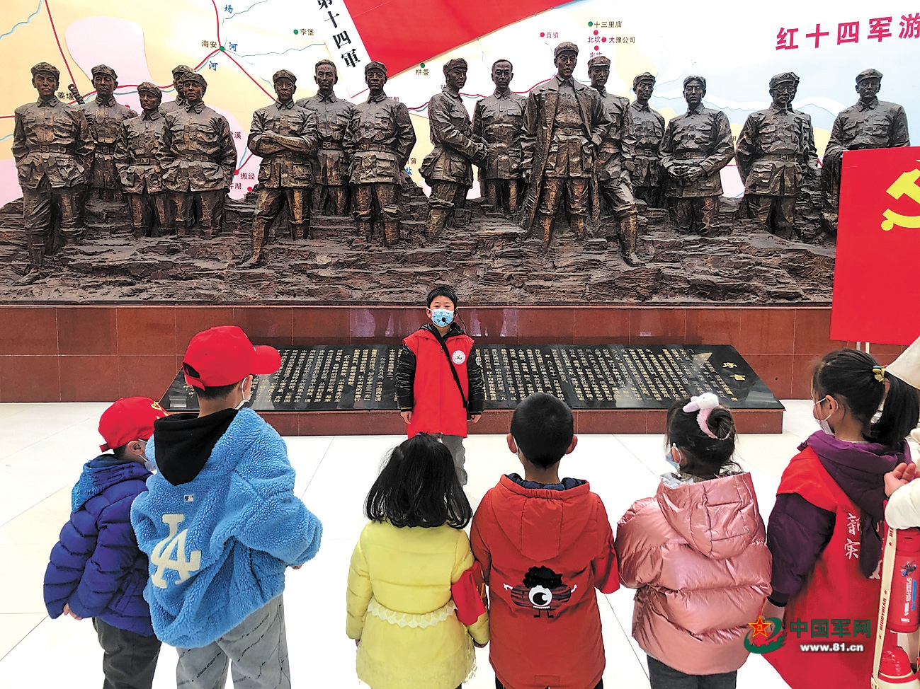 红色文化“小小讲解员”在中国工农红军第十四军纪念馆为参观学生讲述红色故事。陈晓华摄