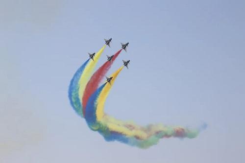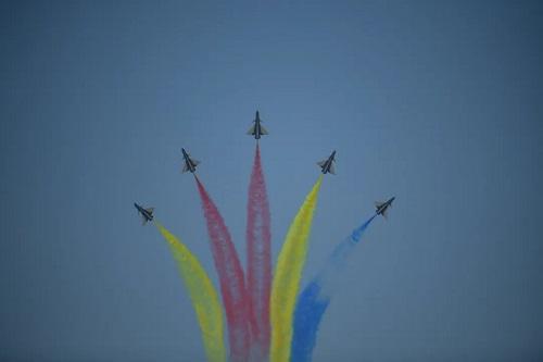现场,“中国红”与“空军蓝”的相互映衬、力量与速度的极限碰撞、技术与艺术的完美协调,不仅展现了战机优越机动性能与飞行员高超飞行技术,更映射出人民空军追求卓越的精神品质。