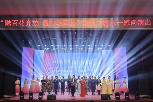 下午15时许,融通文教“融百花齐放 通沙场军营”八一慰问演出正式开始,干部员工与官兵们及其家属代表欢聚一堂,共庆八一,共话强军。