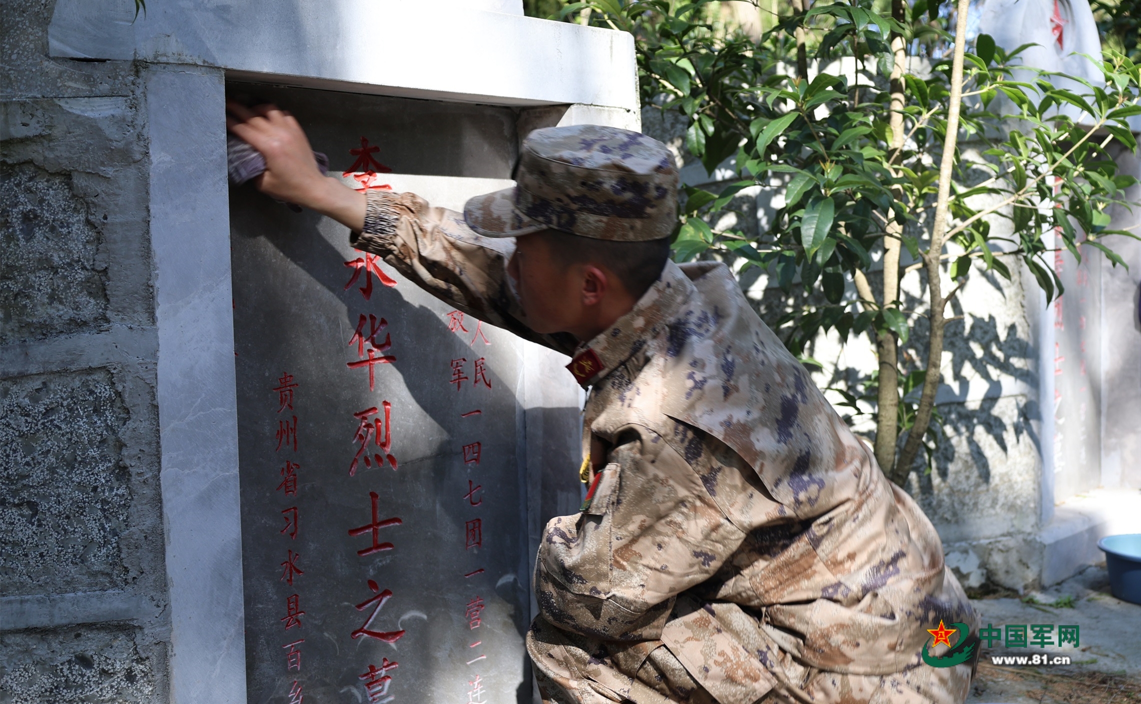 擦洗烈士墓碑。徐安泽 摄