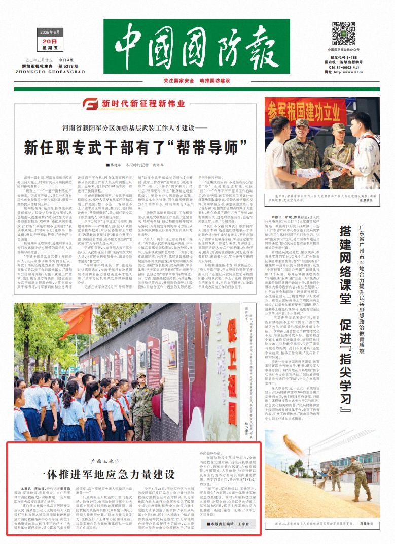 只见两架无人机迅即升空飞赴火场。数分钟后,市消防救援指挥中心大屏幕上显示实时回传的现场画面。消防救援支队指挥员据此果断定下决心,组织力量进行处置。“两支力量共同发力、优势互补。”玉林军分区领导介绍,这是军地应急力量统筹建设和一体运用的有益探索。