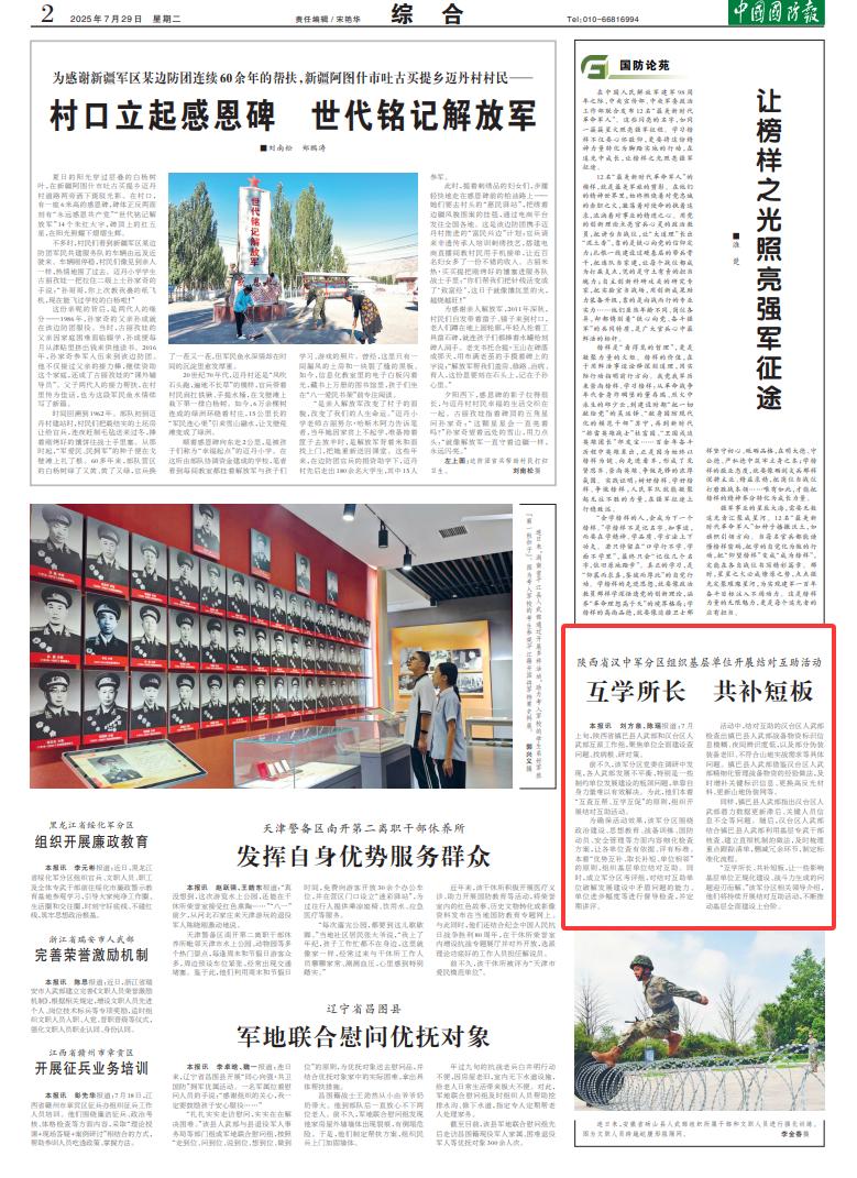 陕西省汉中军分区组织基层单位开展结对互助活动