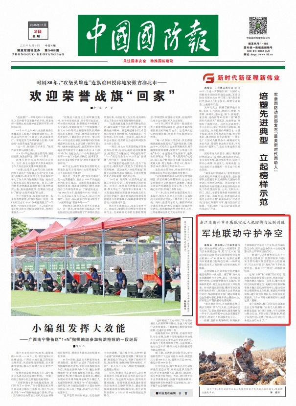 中国国防报讯 李东明、记者宋芳龙报道:“报告指挥部,低空一级预警!禁飞区东侧低空出现‘黑飞’无人机,建议立即启动低空安全联管联控应急响应机制……”10月16日,在浙江省衢州市某重要目标周边空域,一场军地联合低空无人机防御与反制训练拉开帷幕。