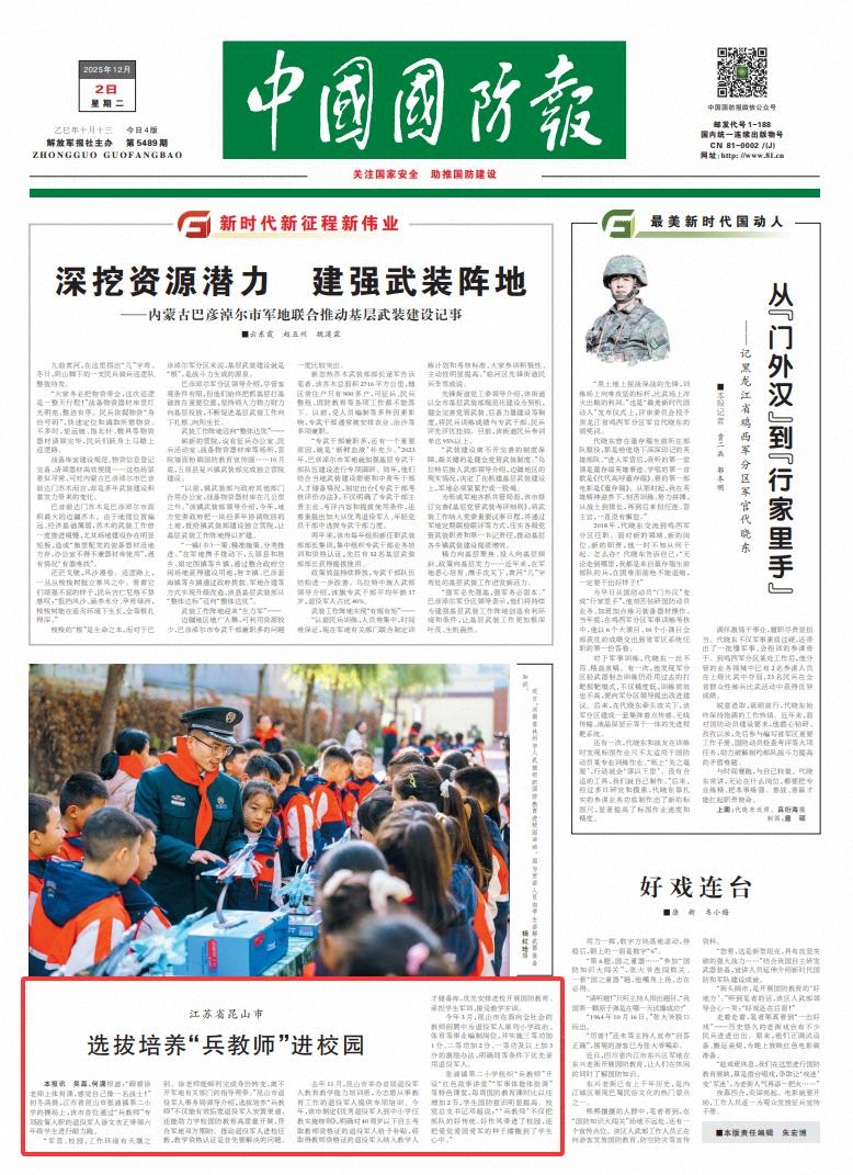 “军营、校园,工作环境有天壤之别。徐老师能顺利完成身份转变,离不开军地有关部门的指导帮带。”昆山市退役军人事务局领导介绍,选拔培养“兵教师”不仅能有效拓宽退役军人安置渠道,还能助力学校国防教育高质量开展,符合军地双方期盼。推动退役军人进校任教,教学资格认证是首先要解决的问题。
