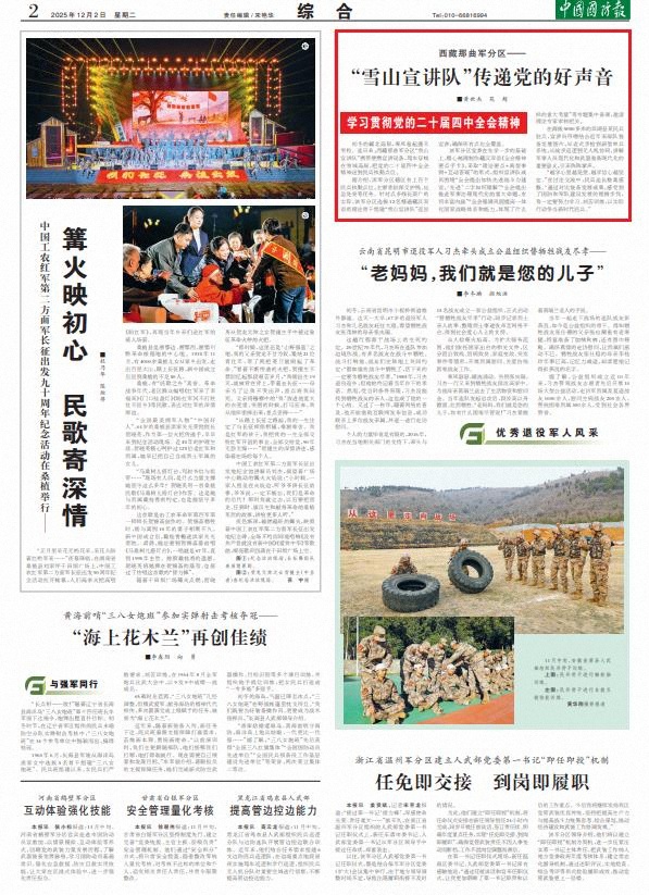 据介绍,该军分区辖区有上百个民兵执勤点位,主要承担保交护线、应急处突等任务。针对点多线长面广的实际,该军分区选拔12名精通藏汉双语的理论骨干组建“雪山宣讲队”巡回宣讲,确保所有点位全覆盖。