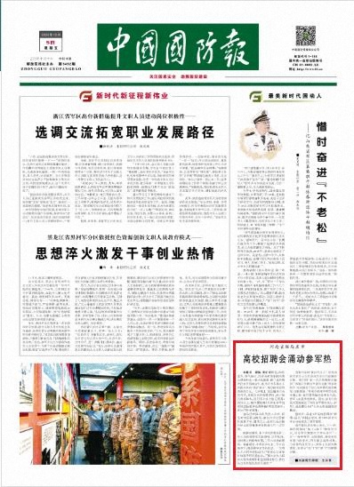 中国国防报讯 周强、李红军报道:时序孟冬,寒气渐生,河南省黄淮学院招聘会现场却是一派火热景象,除了各招聘单位设立咨询台外,驻马店市各县区人武部也纷纷“搭台设点”,举办征兵宣传进高校活动。大屏幕上,滚动播放征兵宣传片,受阅官兵的铿锵步伐、演训场的硝烟烽火,吸引不少学生驻足观看;咨询台上,整齐摆放着《大学生参军指南》《退役复学政策解读》等宣传资料,学生们争相阅看。