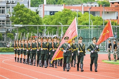 1月5日清晨,笔者走进湖南第一师范学院,正逢庄严的升旗时刻。激昂的国歌声中,国旗护卫队迈着铿锵有力、整齐划一的步伐,护送五星红旗走向升旗台。学院领导告诉笔者,每周一的升旗仪式风雨无阻,这支国旗护卫队更是学院国防教育成果的一张亮丽名片。2025年9月3日,队员赵伊作为民兵方队的一员,昂首阔步走过天安门广场,光荣接受党和人民的检阅。11月,该队在湖南省国防教育系列活动中获得多项荣誉。