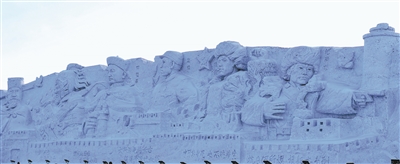 吉林省长春市冰雪新天地景区里的英雄雪雕群像。王 佳摄
