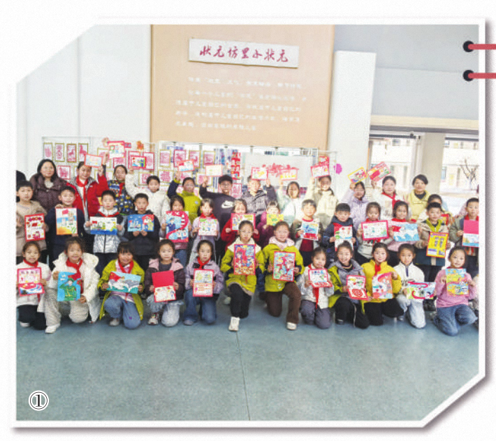 图①:江苏省南京市状元坊小学学生展示送给官兵的手绘贺卡。王馨雨摄