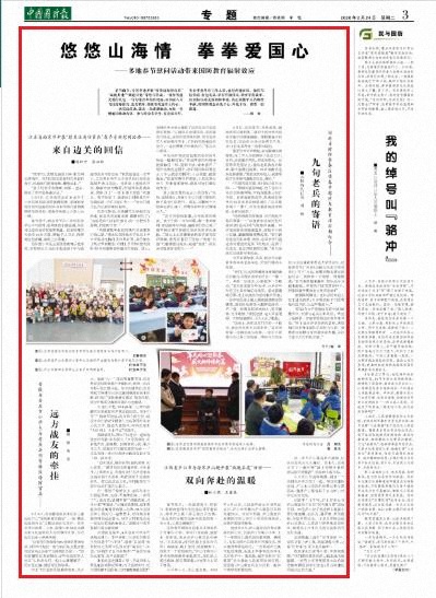 更让她惊喜的是女儿的回答:“妈妈,老师说过,在青少年心中播下爱国的种子是他们的责任。现在,这颗种子已经种在我心里了,我要好好呵护它慢慢长大。”