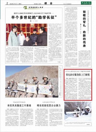 中国国防报讯 徐丽林、朱琳报道:春节前夕,辽宁省大连军分区组织特色医疗服务队登门走访离退休老干部家庭,开展“巡诊送药、问需解难”活动。老干部们由衷称赞:“想得周到、做得细致,让我们晚年生活更安心、更幸福!”