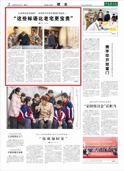 “红军标语是见证中国革命历史风云的‘活化石’,有着很高的研究价值。”乐安县人武部领导说,从祖辈的冒死掩护,到父辈的倾力修缮,再到年轻一代的活化传承,邱希仁一家的坚守,诠释了对红色基因的珍视与传承,是开展爱国主义教育和国防教育的生动教材。