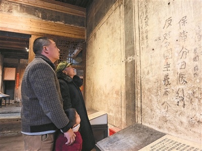 “红军是工农自己的军队”“打倒土豪劣绅,农民翻身作主”……青砖黛瓦的老宅内,120余条用毛笔、石灰水书写的红军标语,在斑驳的土墙上依稀可辨。