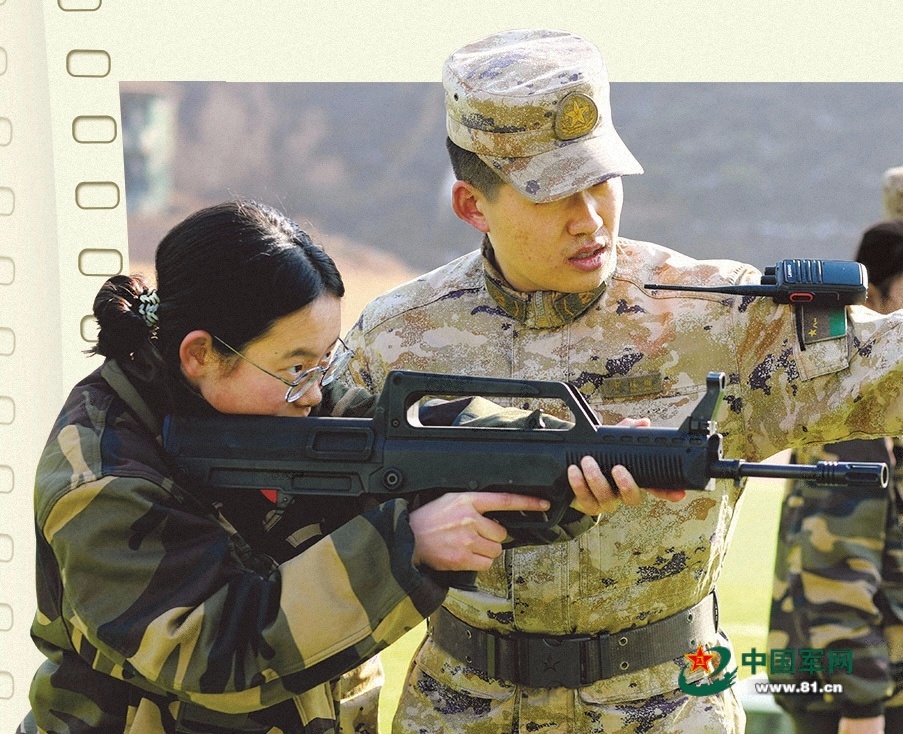 “爆破”声响起,在围观学生的欢呼声与掌声中,崔倬理带着几分羞涩的笑容快步入列。来自甘肃天水的崔倬理,从小就对军事知识感兴趣,是个不折不扣的“军迷”。无论是枪械操作还是模拟手榴弹投掷课程,他都听得格外专注。