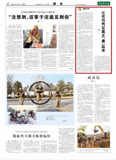当然,让优待凭证真正“通”起来,还需在“实”上下功夫。标准要实,加快制定全国统一的优待场景与适用标准;认证要实,依托国家政务服务平台建设优抚对象身份核验中心,实现“一次采集、多端调用、全域认可”;服务要实,推动优待政策常态化培训进社区、进商圈、进校园。如此,才能让热爱军队、崇尚英雄、尊崇军人成为全社会的共识和行动。