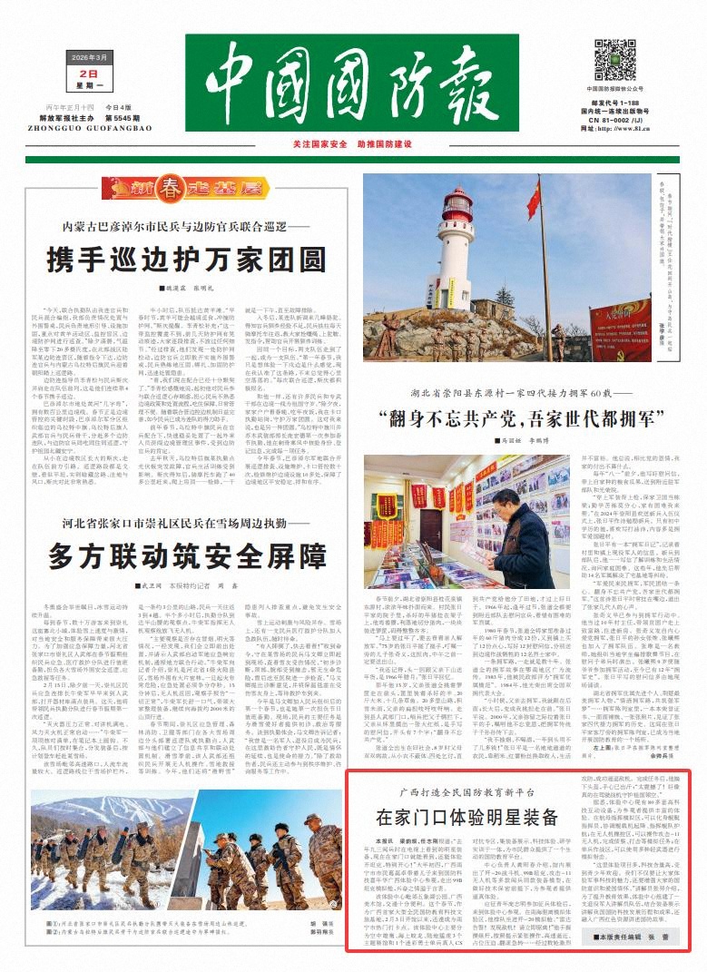 中国国防报讯 梁韵规、任志刚报道:“去年九三阅兵时在电视上看到的明星装备,现在在家门口就能看到,还能体验开坦克,特别开心!”大年初四,广西南宁市市民葛磊卓带着儿子来到国防科技嘉年华广西体验中心参观,走出99B坦克模拟舱,兴奋之情溢于言表。