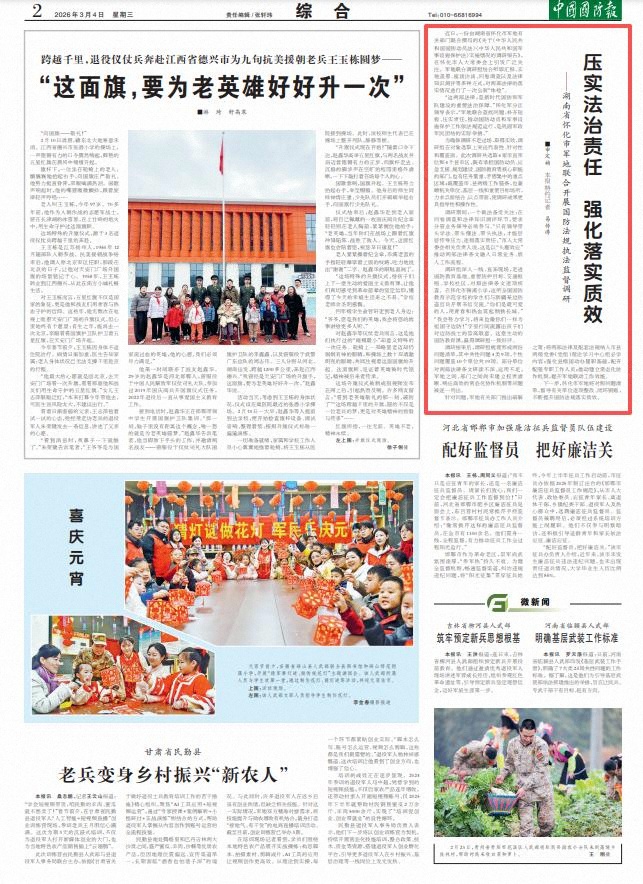 下一步,怀化市军地将对照问题清单,督导有关单位逐项整改、闭环销账,不断提升国防法规落实质效。