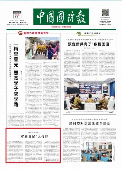 中国国防报讯 戴伟国、张立鹏报道:3月1日上午,笔者走进福建省云霄县“英雄书屋”看到,一名高中生静静坐在图书角阅读《沉默的荣耀——云霄吴作枢烈士》一书,了解英雄故事、追寻英雄足迹。