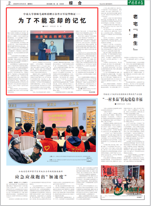 如今,毛成辉将捐赠证书摆放在办公室书柜最醒目的位置,让它“时时提醒自己不忘坚持下去”。“我希望这些老物件能成为一扇窗,让抗战记忆真实可触,同时警示后人,唯有铭记历史,方能开创和平美好的未来。”凝视着证书,毛成辉目光坚定地说。