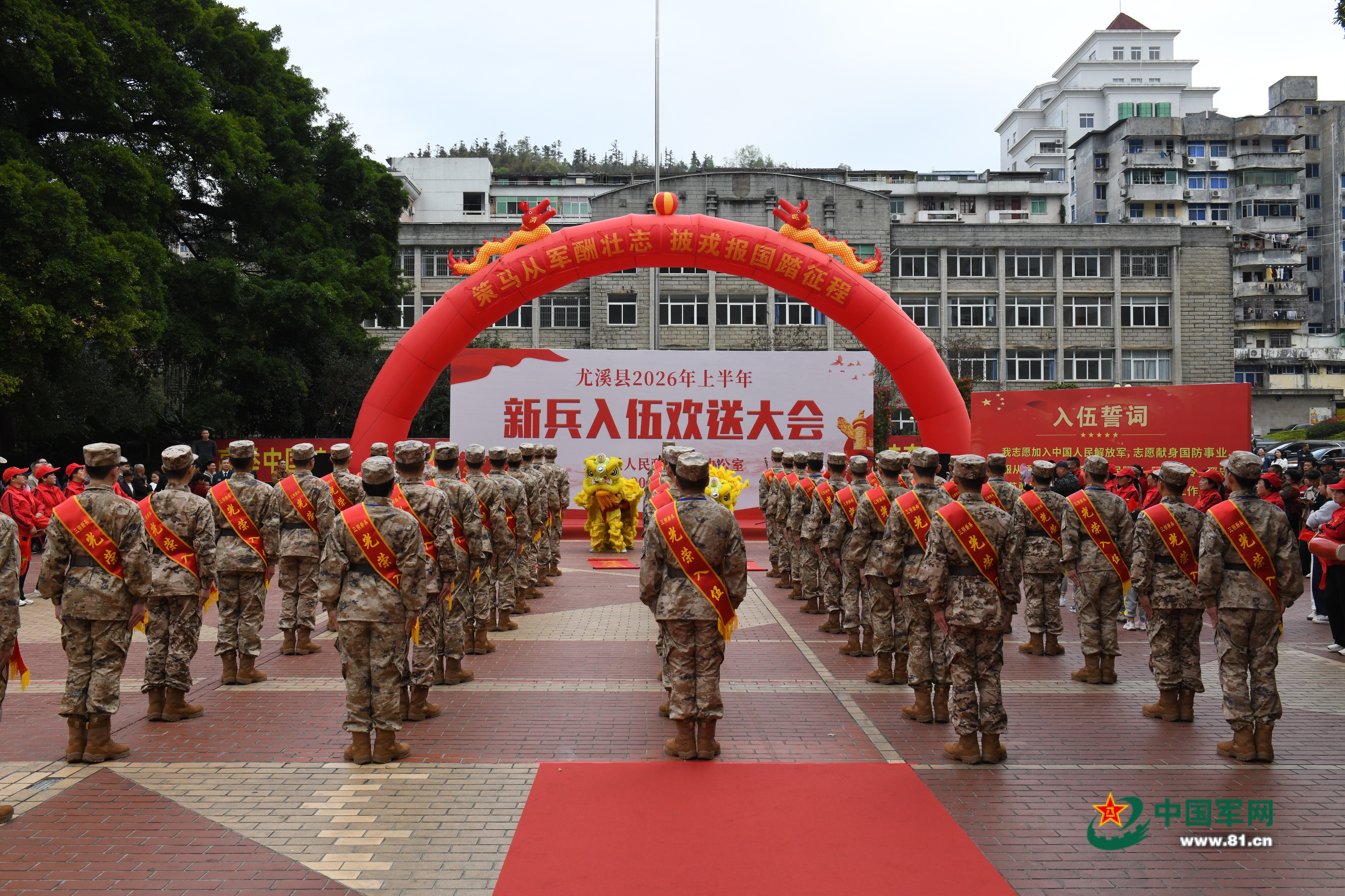 伴随着庄严的《中华人民共和国国歌》,欢送仪式正式开始。46名尤溪籍入伍新兵身着戎装、胸佩红花,精神抖擞、列队整齐,全体肃立行注目礼。随后,新兵代表意气风发地走上发言台,表达了投身军营、报效祖国的坚定决心。最后,全体新兵庄严宣誓,许下强军报国的铮铮誓言。