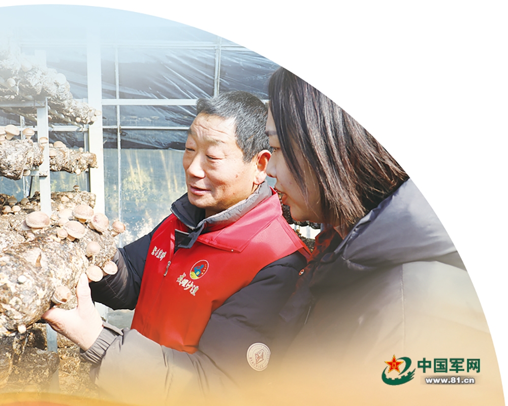漯河市“乡村振兴志愿服务队”队员张德山为村民讲解香菇种植技术。白家琦摄