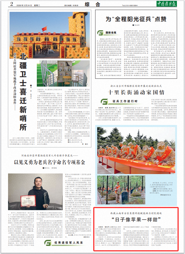 近年来,山南军分区某团作为克松村的结对帮扶单位,帮助村民从传统的青稞粮食种植向高原特色苹果栽培转型,助力村民拓宽致富渠道。他们还与村民一起探索“智能设备助农、数字网络赋能”的路子,组织村民开展网上直播带货、学习各类智能设备的操作与使用方法,手把手帮助村民破解果树栽培中遇到的难题。