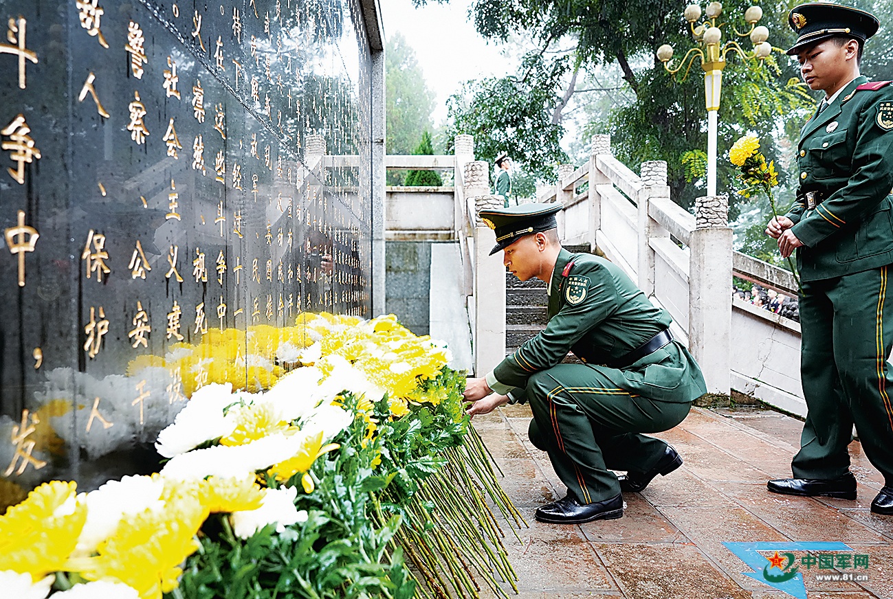 武警贵州总队黔西南支队官兵到驻地烈士陵园祭奠英烈。罗康 摄