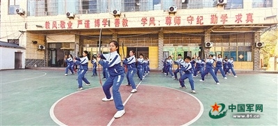 “停!眼神——要有杀气,更要有正气!”队列前方,退役军人、“破锋八刀”教练员郭忠玉,用洪亮的声音提醒着学生。2006年,从某部退役的郭忠玉,被“破锋八刀”的故事感染,致力于推广这套刀法。