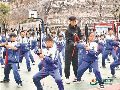 3月23日上午,云南省彝良县题铭学校课间活动时间,百余名少年的铿锵誓言响彻校园。他们手持木刀,列阵肃立。在教练员口令指引下,整齐演练源自长城抗战烽火的经典刀法——“破锋八刀”。