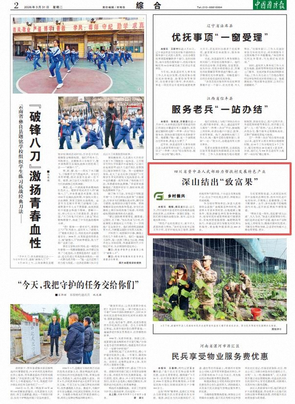 作为结对帮扶单位,该县人武部借助全县推广血橙新品种的时机,聘请果木专家来到村里,实地检测土壤条件,现场讲解品种优势和种植技术,指导村民对成型果树进行嫁接改良,系统传授栽植修剪、施肥喷药等技巧,并通过宣讲引导激发村民参与积极性,使血橙种植面积达200余亩。