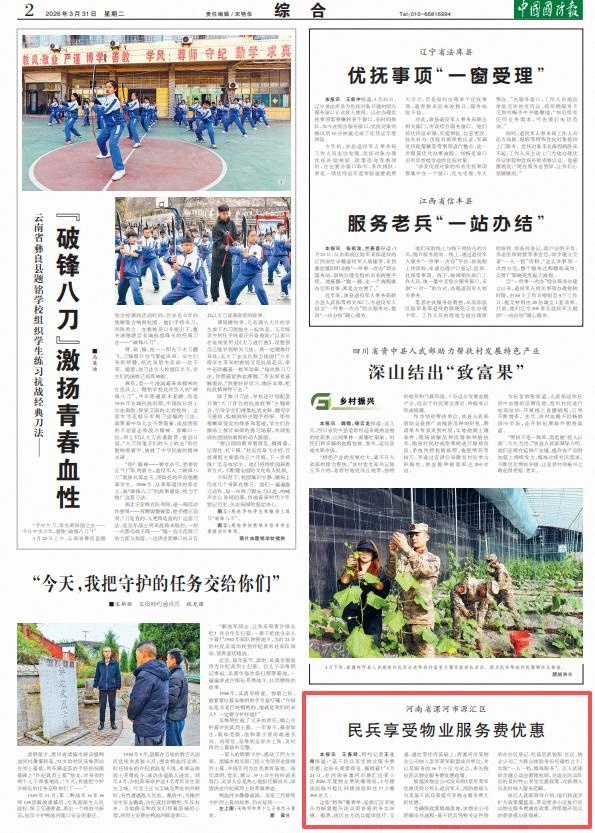 中国国防报讯 王春辉、特约记者王士刚报道:“基干民兵享受物业服务费优惠,这份光荣看得见、摸得着!”3月24日,在河南省漯河市源汇区某小区2026年度物业费收缴现场,3号楼居民陈兴稳比同楼同面积住户少缴300余元。