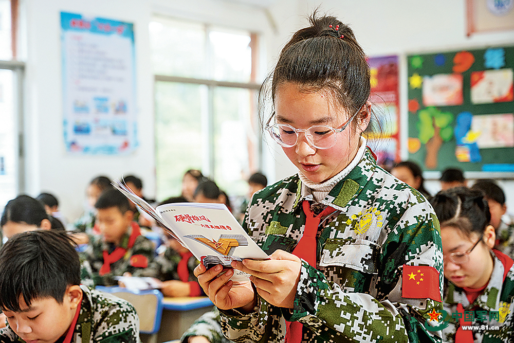 硬骨头六连希望学校学生诵读校本教材《硬骨雄风——六连英雄传奇》。文俊胜摄