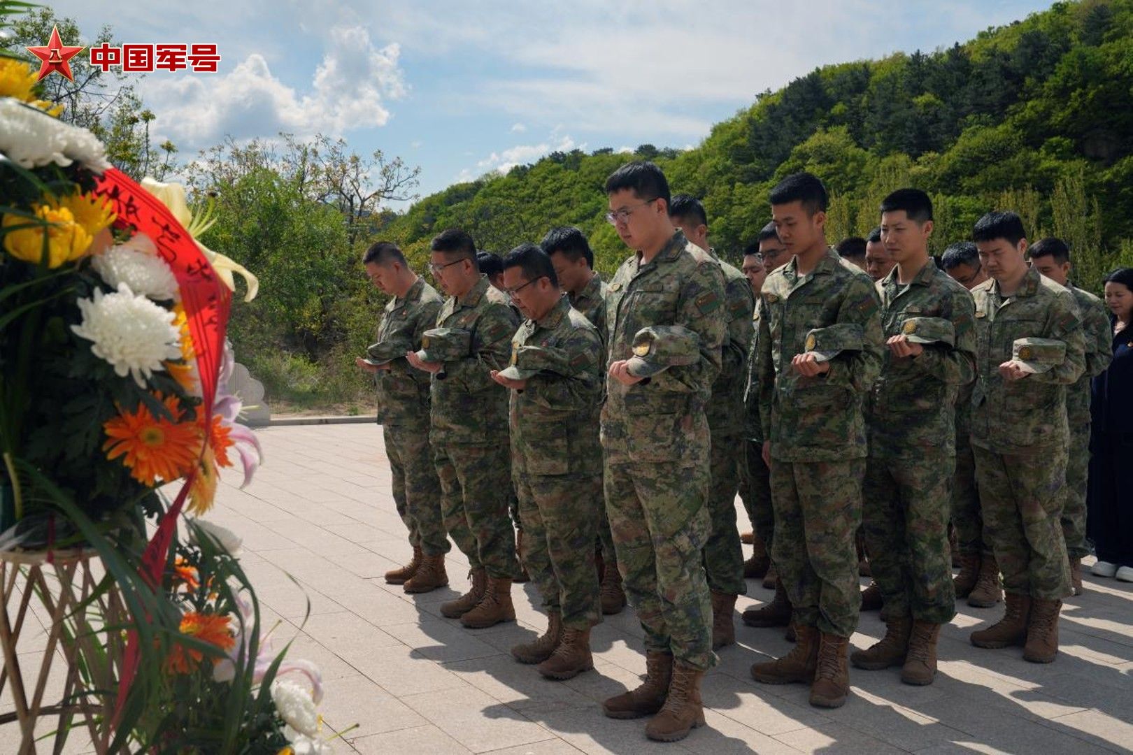 “脱帽!向先烈默哀!”全体官兵庄严肃穆、整齐列队,礼兵手持花篮缓步走向烈士纪念碑,以最庄重、最朴素的方式表达对革命先烈的无限追思与崇高敬意。