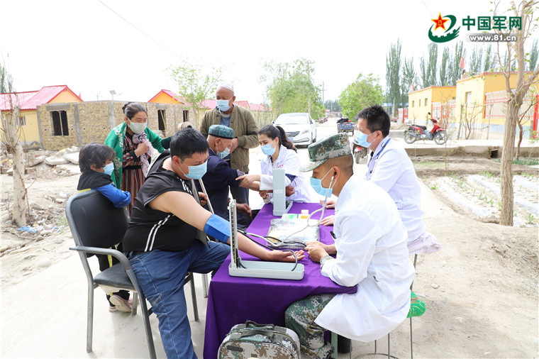 “你们就是我的亲人呀!我这八十多岁的命就是你们救的……”常年患有高血压村民阿不都·买买提面对官兵感谢地说道。4月25日,新疆泽普县人武部联合县人民医院医务人员来到阿热硝巴扎村,开展免费送医、送药、送健康活动。