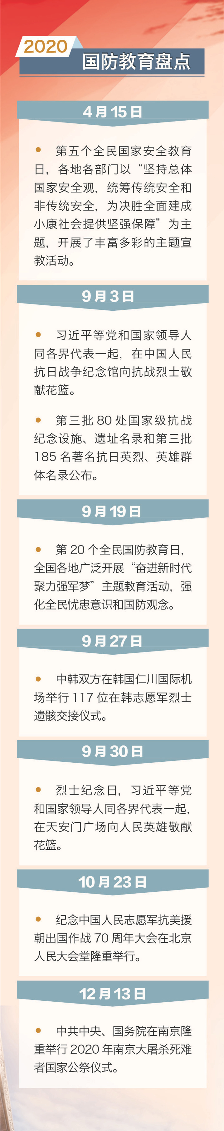 “十三五”圆满收官,“十四五”拉开序幕。11月3日,《中共中央关于制定国民经济和社会发展第十四个五年规划和二〇三五年远景目标的建议》发布,明确“强化全民国防教育”。