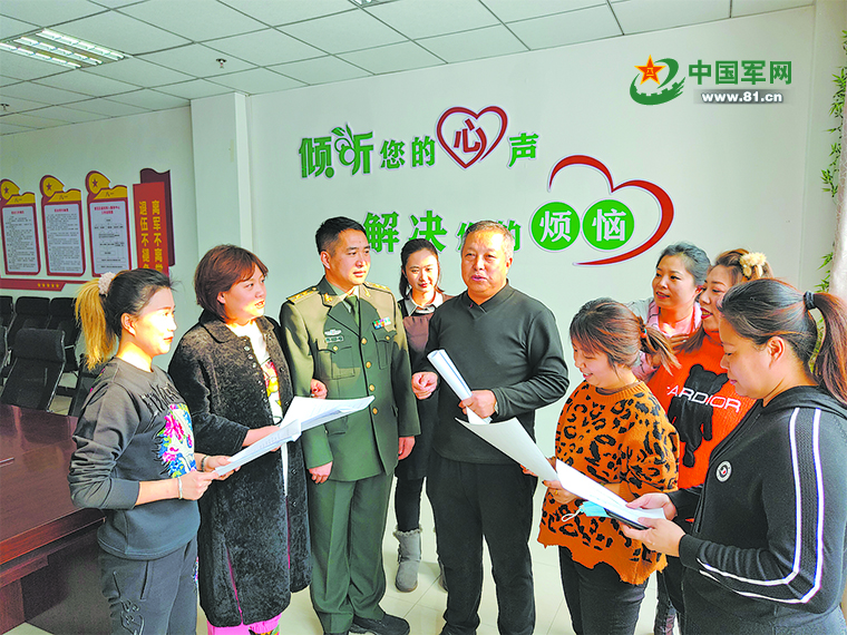 区双拥办领导向军嫂讲解有关随军家属就业、军人子女入学的创新举措。姜玉坤摄
