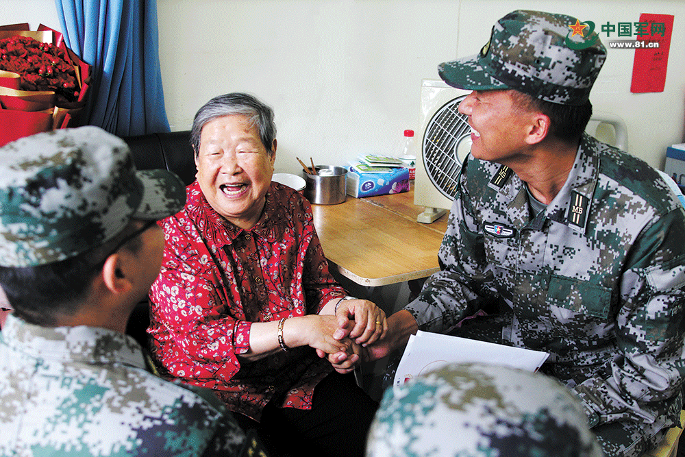 “老前辈,我们是合肥民兵,在这次全省民兵教练员比武竞赛中被评为标兵,特来向您汇报!”