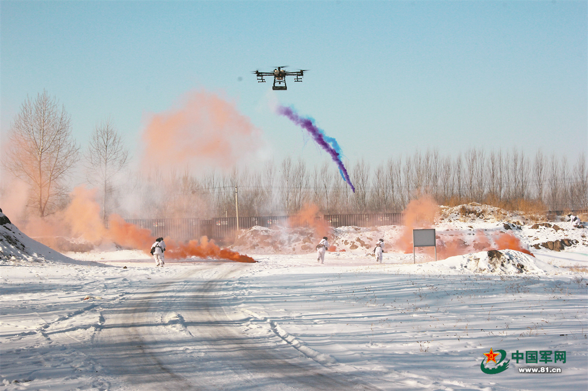 黑龙江省齐齐哈尔军分区组织民兵无人机分队开展支前保障演练。范 超摄