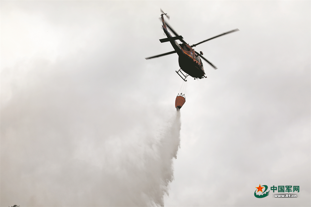 重庆市渝北区民兵直升机侦察分队执行森林灭火任务。谭 波摄