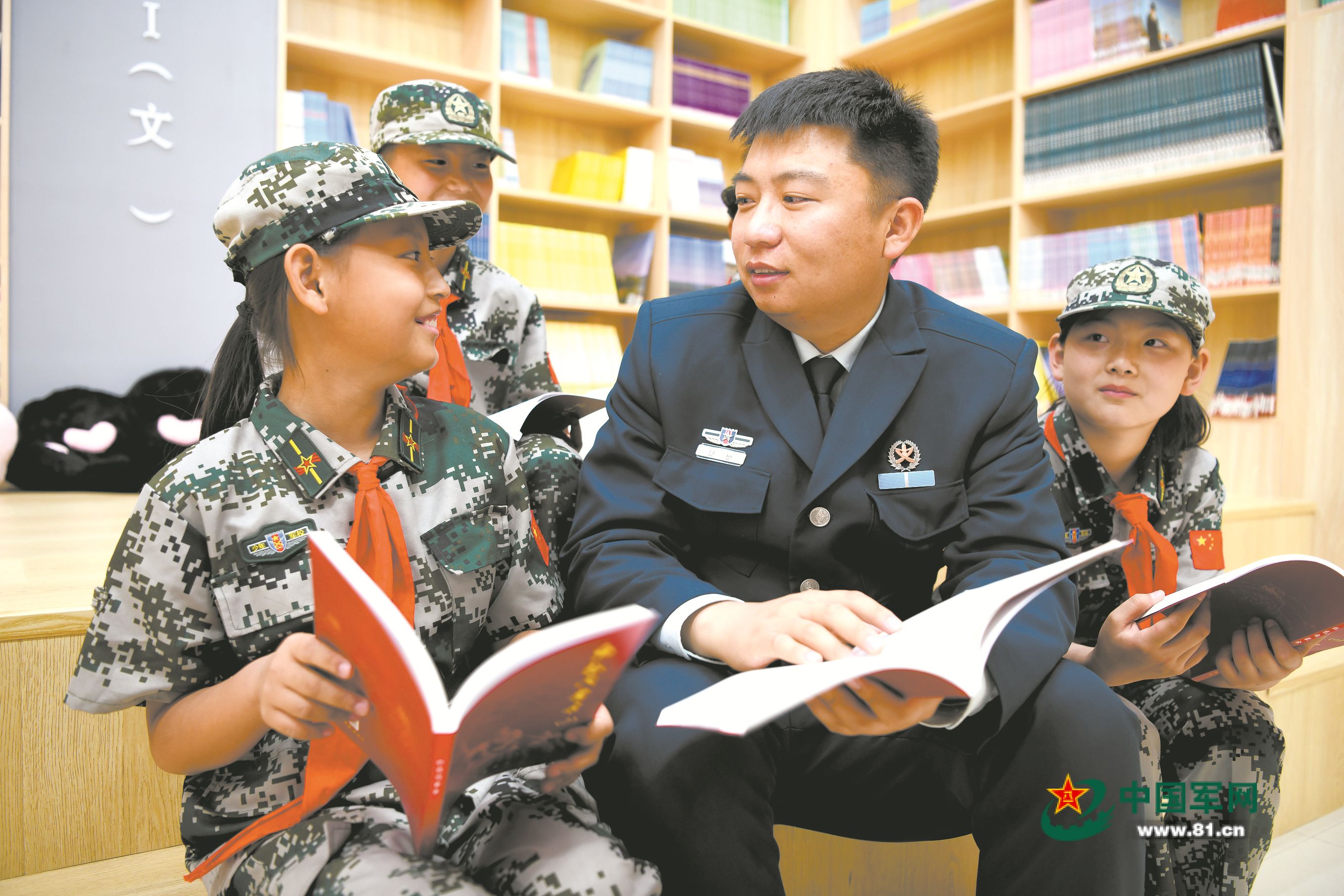 内蒙古鄂尔多斯军分区文职人员为少年军校学生讲述红色故事。蒋世伟、杨建荣摄