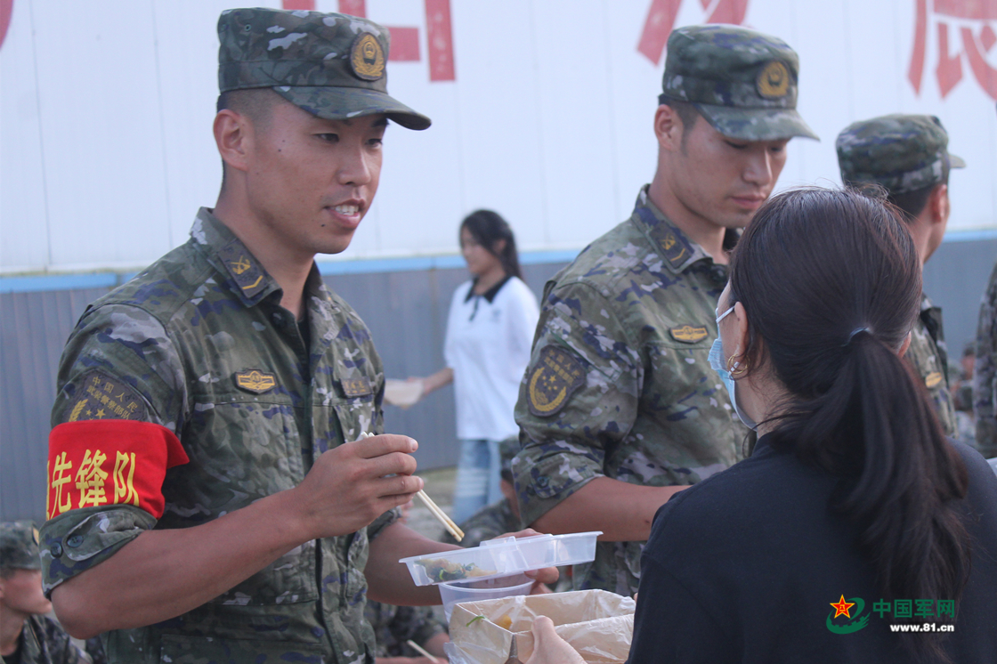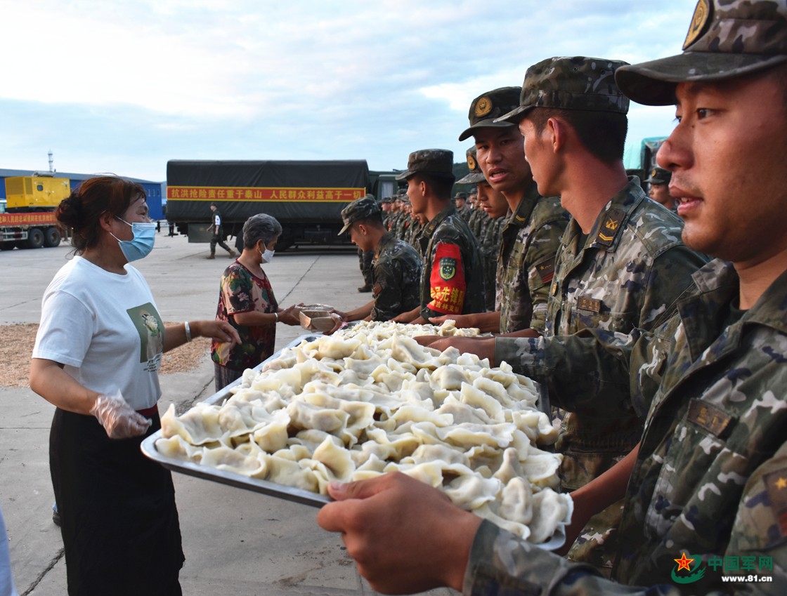 “孩子们,快来吃刚出锅的热饺子喽……”8月8日18时许,武警吉林支队200名官兵完成当日任务,拖着疲惫的身躯返回宿营地,一阵阵热情的招呼声由远及近。只见驻地舒兰市开原镇保安村的十几位大妈端着一屉屉饺子笑盈盈地走来,百余名村民紧随其后。