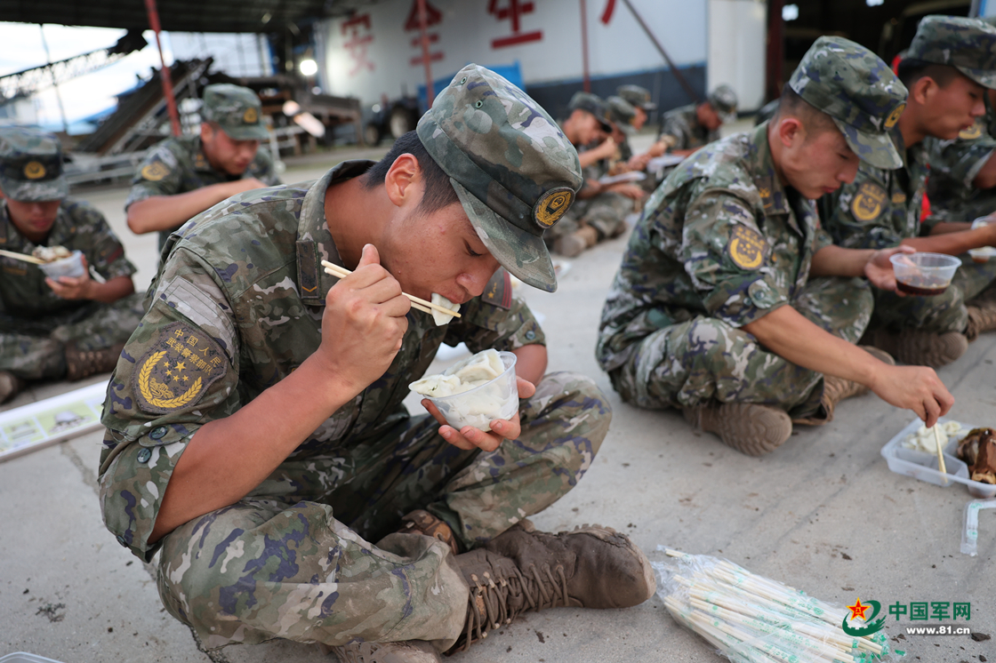 “同志们,我们平时吃一顿饺子不算什么。可现在灾区乡亲们拿出自己的食材给大家包饺子,这不是简单的一顿饭,这是人民群众对人民子弟兵的深情厚爱,更是期盼我们再接再厉的鞭策。”支队长齐志忠激动地对官兵说:“打赢抢险救援这场硬仗,你们怎么办?”