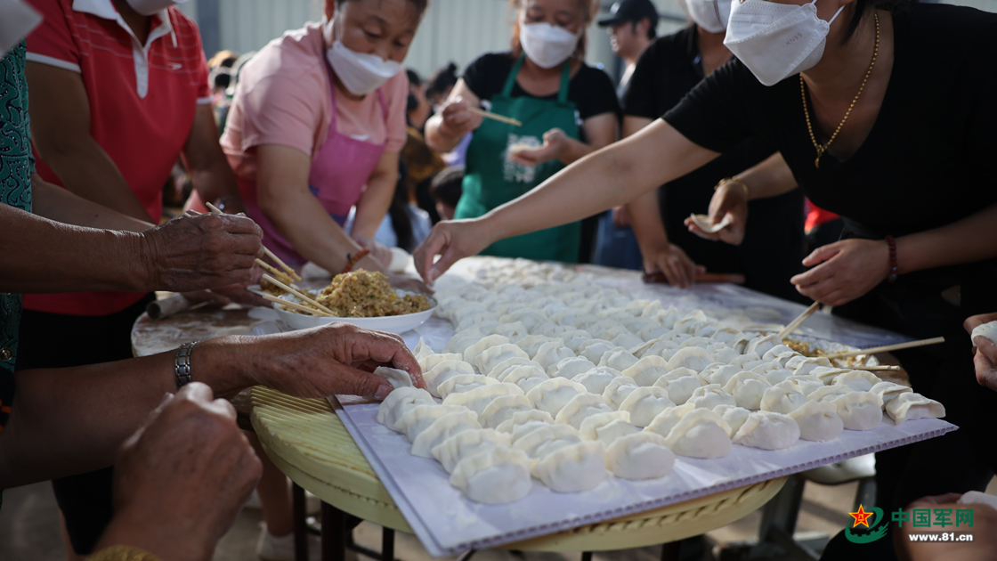 官兵吃着热水饺,也感受到民拥军军爱民的深厚情谊。