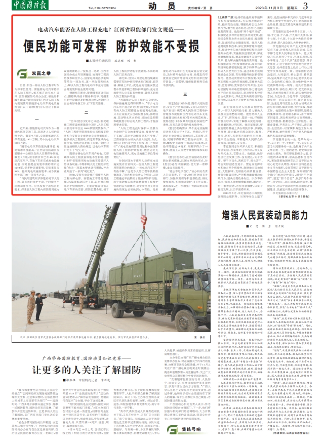 “与民用建筑同步修建的地下人防工程,具有战时保护生命、平时服务生活的双重作用。应当按照平战结合的要求,探索在人防工程内安装使用充电设施的新路子。”按照这一思路,江西省国动办成立专项课题组,协调省工程消防技术研究中心、国家电网南昌供电局等单位一同攻关,逐一从政策和技术上,解决人防工程内电动汽车充电设施合理安装和安全使用问题。