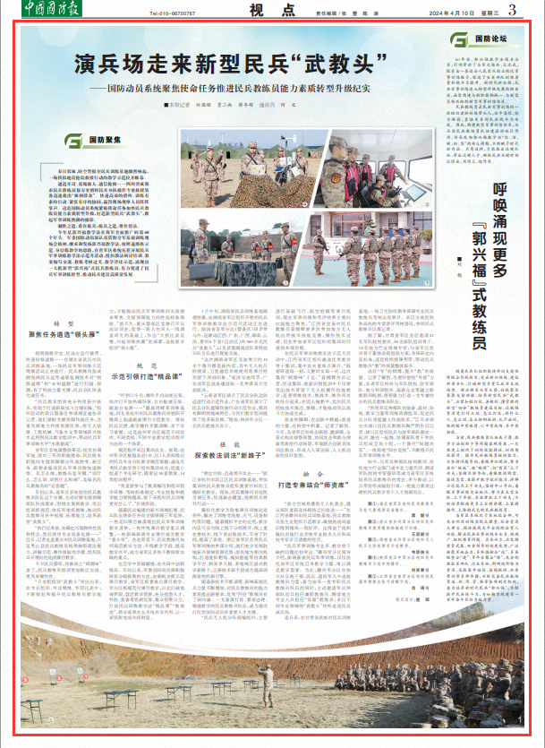 随着新技术不断涌现、新域新质民兵力量不断增加,对民兵教练员的能力素质提出新要求,优秀“四会”教练员有了新内涵。一支善谋打仗、素质过硬、精通教学的民兵教练员队伍,成为建设打仗型国防动员的重要人才支撑。