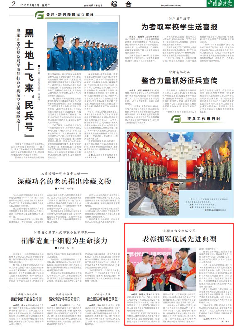 中国国防报讯 陈明东、汤伟报道:革命老区,拥军情深。“八一”前夕,安徽省六安市裕安区人武部、区退役军人事务局联合举行2025年度“十佳‘送子参军母亲’”“十佳军嫂”和“吸纳退役军人就业优秀企业”等拥军优属先进典型评选表彰活动。