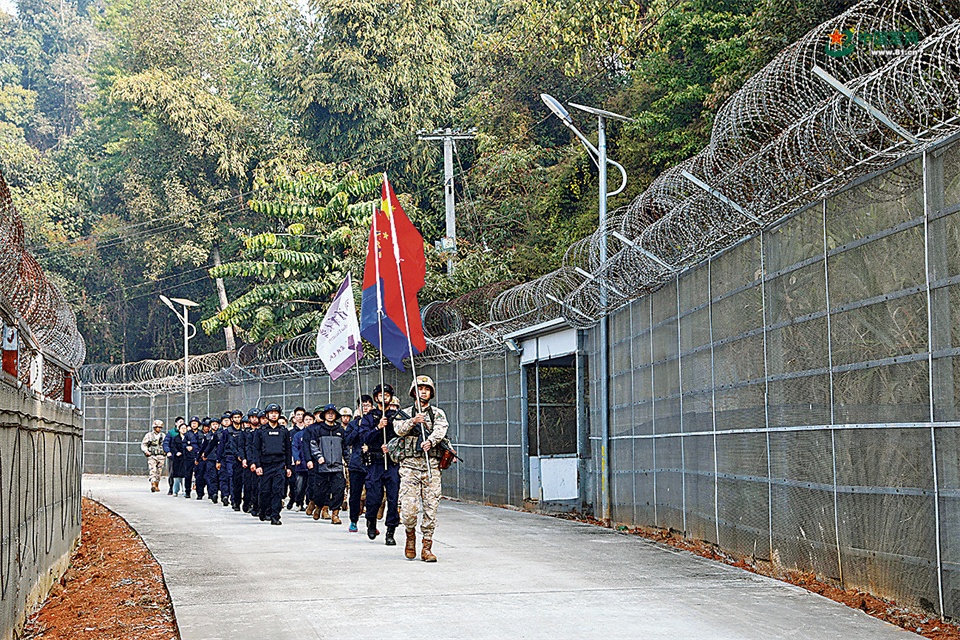 在中缅边境德宏陇川段,学子们跟随边防官兵、民兵、民警踏上10公里巡逻路。他们用脚步丈量国土,在哨所、界碑前驻足感悟,亲身体验戍边生活。