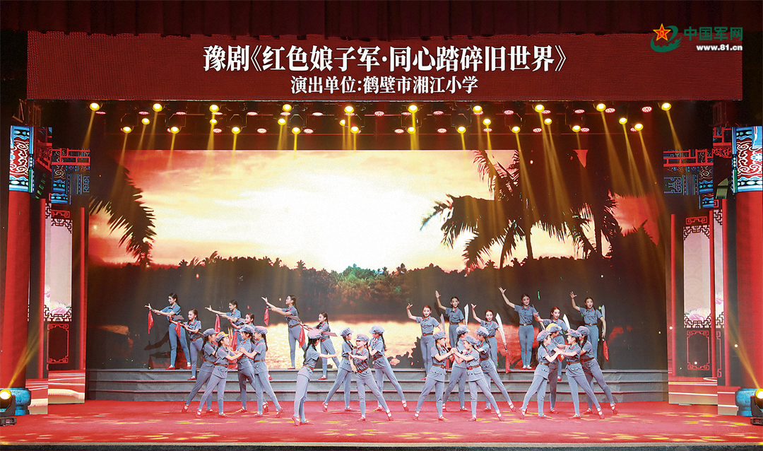 河南省鹤壁市湘江小学学生表演舞台剧《红色娘子军》。张常胜摄