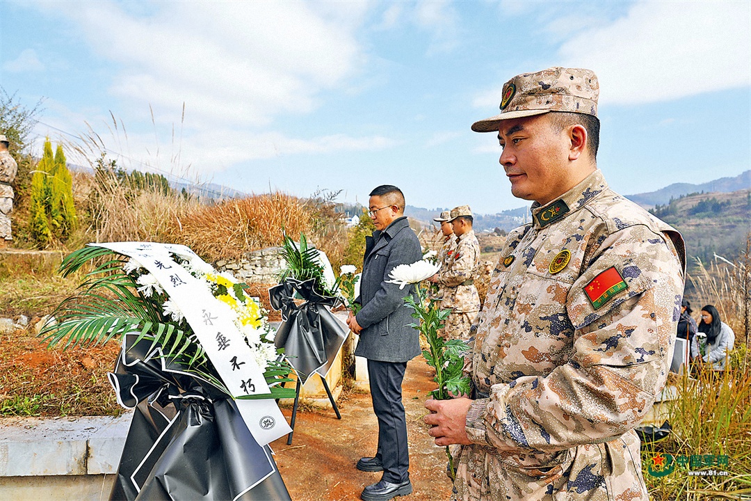 清明节前夕,贵州省六盘水市钟山区汪家寨镇武装部组织民兵和群众开展祭扫活动,缅怀革命先烈,传承红色基因。李威 摄
